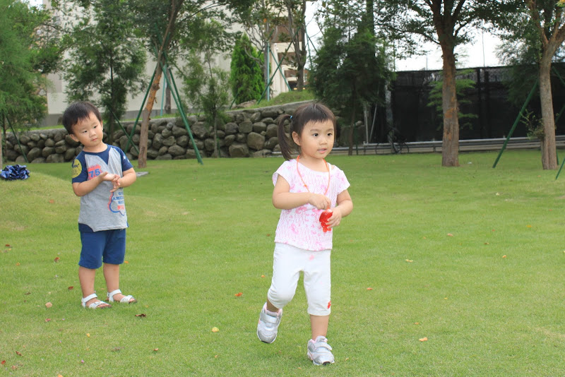 大夥兒帶著小朋友到戶外的草坪去跑跑跳跳~~